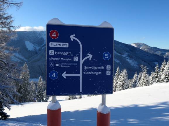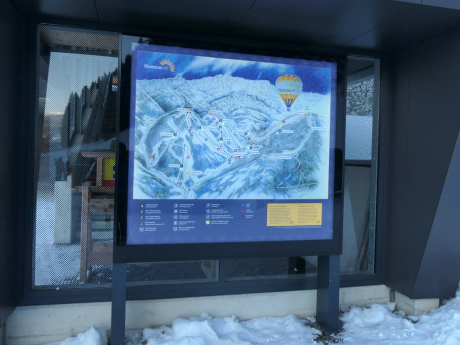 Indications de directions (plans, panneaux informatifs, signalisation) et sécurité sur le domaine skiable Filzmoos