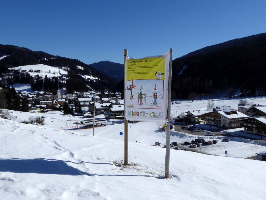 De grands panneaux d'information avec l'état actuel des remontées et des pistes se trouvent aux caisses des remontées mécaniques. La signalisation du domaine skiable Filzmoos/Neuberg est uniforme. Les règles FIS des pistes sont expliquées à la Großbergbahn.