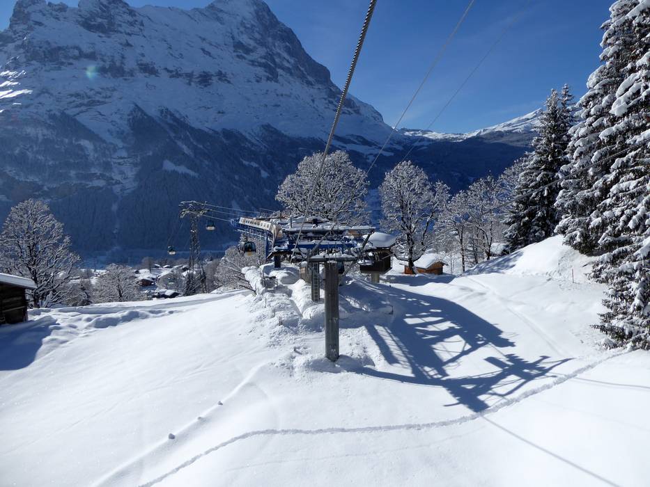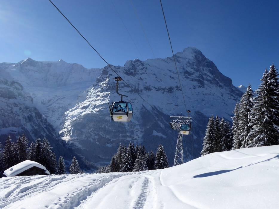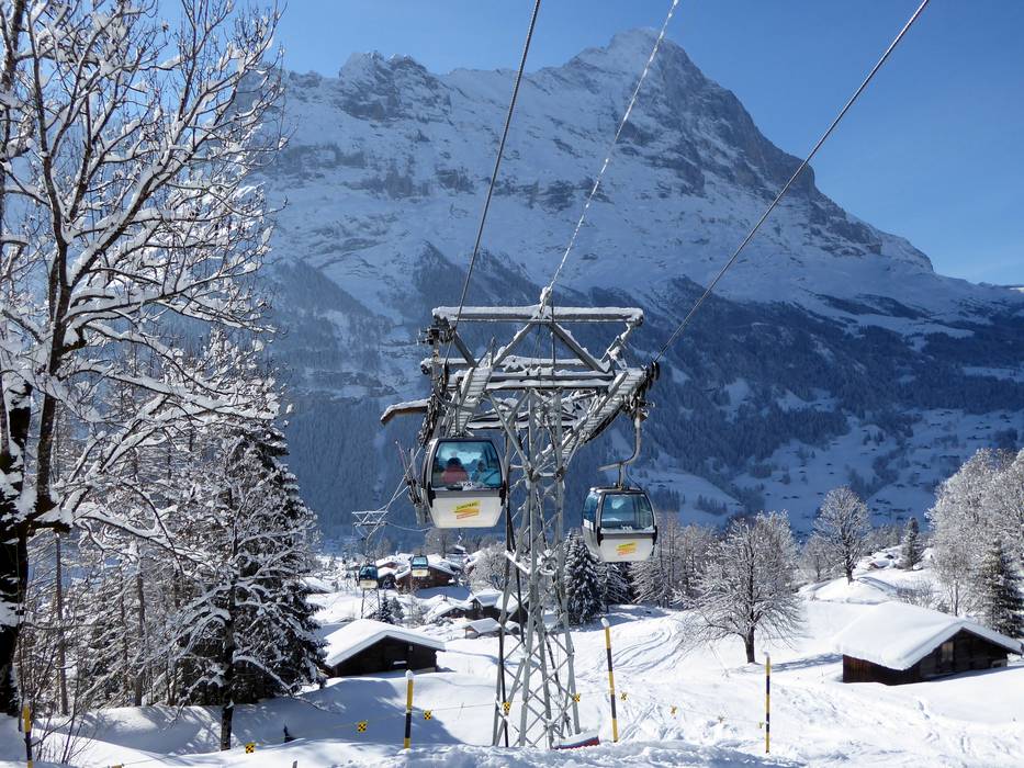 La télécabine 6 places Grindelwald-Bort fait un virage.