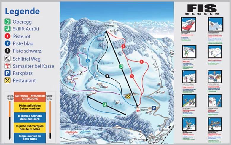 Plan des pistes Fischenthal-Aurüti – Oberegg Saison 2025/2026