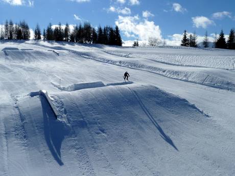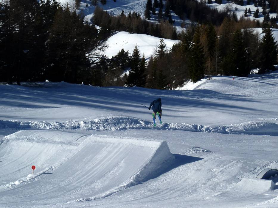 Le snowpark de 550 m se trouve au-dessus de Fondo Piccolo. Les débutants comme les experts se sentent à l’aise sur les modules faciles à intermédiaires.