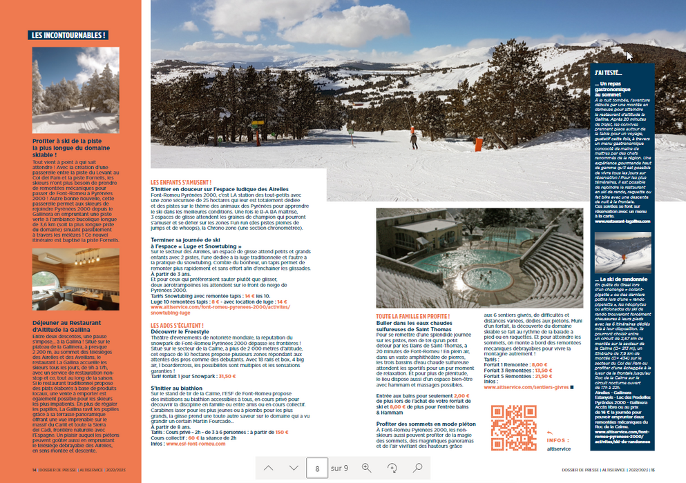 Construction d'une passerelle piétonne entre la piste Levante au Col del Pam et la piste Fornells : les skieurs n'ont plus besoin de prendre les remontées mécaniques pour passer de Font-Romeu à Pyrénées 2000 ! Autre bonne nouvelle : cette passerelle permet aux skieurs d'accéder à Pyrénées 2000 depuis Galinera par une piste verte de 3,6 km à l'ambiance idyllique (la plus longue piste de la région), qui serpente paisiblement à travers les mélèzes ! Elle porte le nom de Fornells-Track.2008/2009