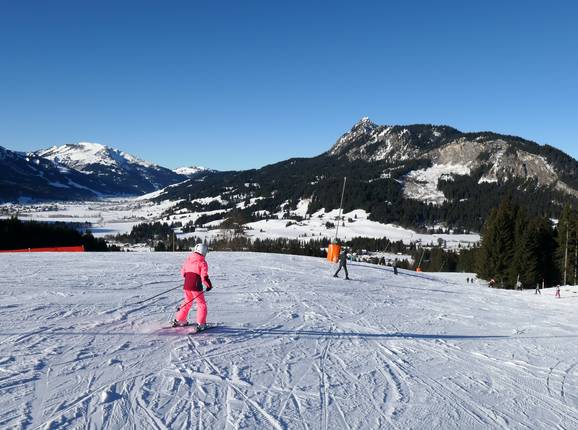 Les débutants font leurs premiers pas sur la Märchenwiese dans la vallée. Le terrain pour débutants se trouve en face des remontées Schachen, au point le plus bas du domaine skiable. Des écoles de ski y donnent également des cours. Le téléski double Schachen dessert deux autres pistes faciles. Dans la partie supérieure, au nord du Füssener Jöchle, près du télésiège 6 places, seules des pistes de difficulté moyenne mais larges sont accessibles. La descente vers la vallée du Füssener Jöchle jusqu'à Grän n'est pas adaptée aux débutants absolus.
