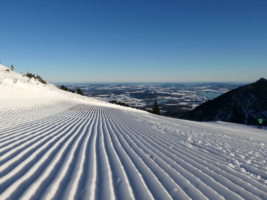 Dans le domaine skiable de Füssener Jöchle à Grän, un grand soin est apporté à la préparation des pistes.