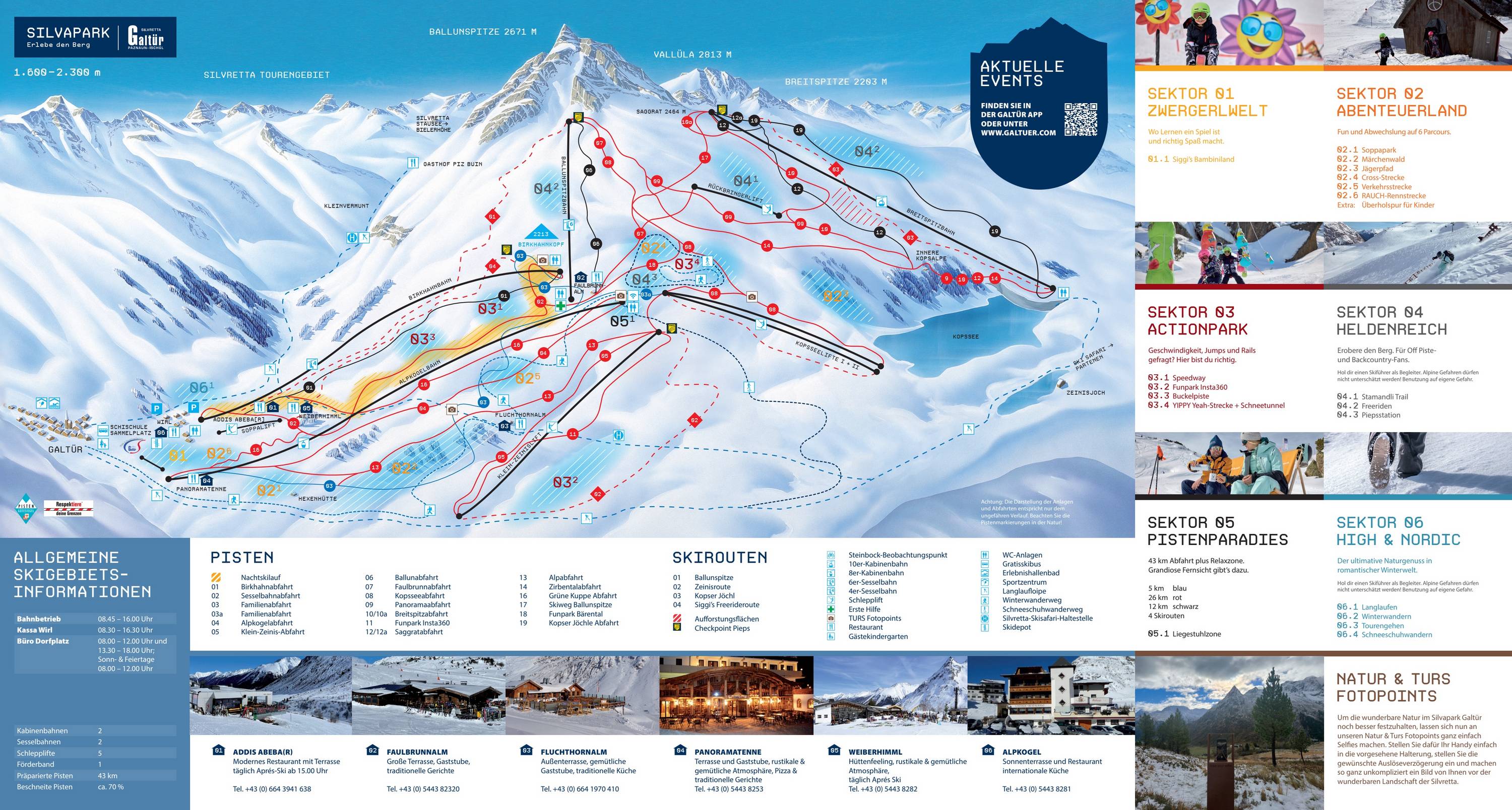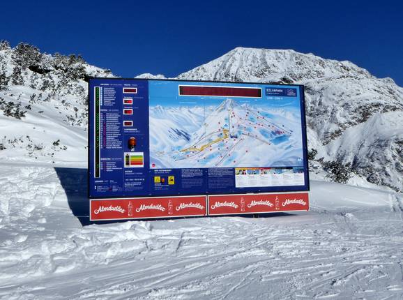 Indications de directions (plans, panneaux informatifs, signalisation) et sécurité sur le domaine skiable Galtür – Silvapark