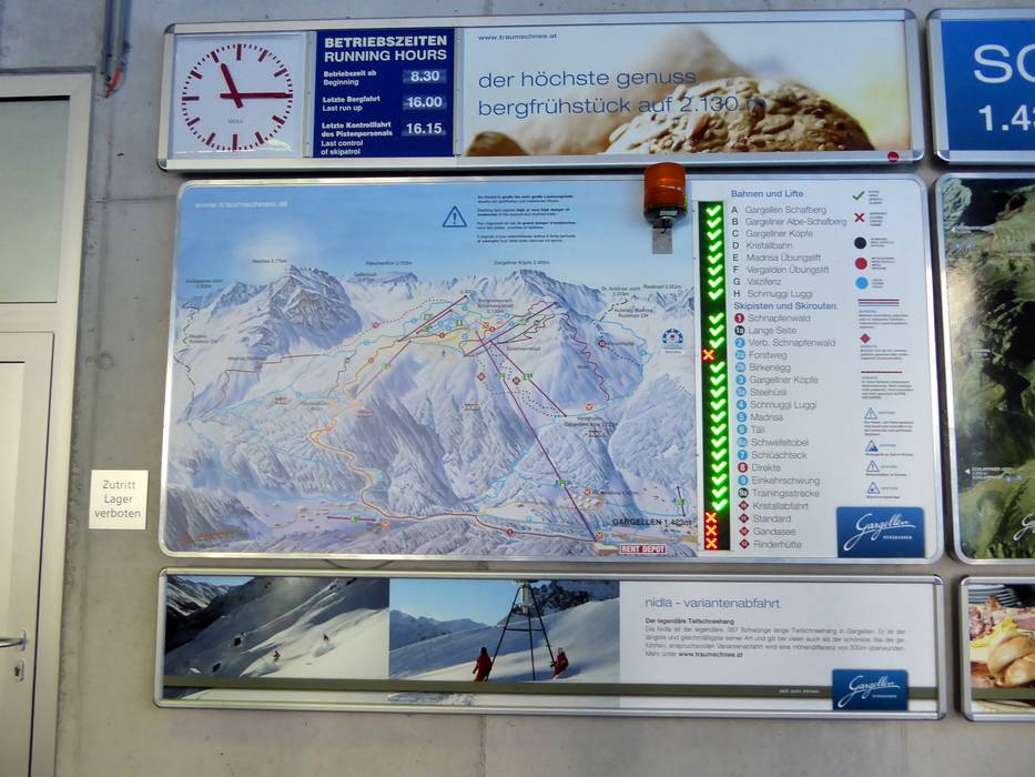 Indications de directions (plans, panneaux informatifs, signalisation) et sécurité sur le domaine skiable Gargellen