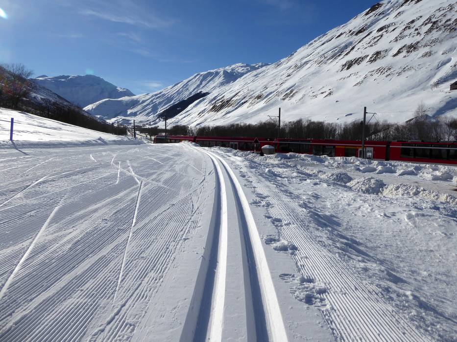 Autour d’Andermatt, il existe des pistes de ski de fond enneigées et bien préparées. Les pistes se trouvent dans un magnifique paysage hivernal. Si vous manquez d’énergie pour le trajet de retour, vous pouvez également reprendre le train Matterhorn-Gotthard-Bahn (MGB) jusqu’au point de départ.