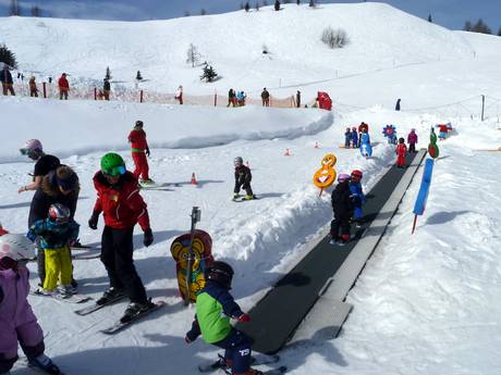 Les familles avec enfants se sentent très bien sur la Gerlitzen. Il existe trois grands espaces enfants (Kanzelhöhe, Klösterle et Feuerberg) portant le nom de Schneebärenland. L'école de ski et de snowboard Gerlitzen Villach s'en occupe. Le Gerlitzen Bino-Bär est toujours présent. Autour des espaces enfants se trouvent des zones d'entraînement du domaine skiable. Toutes les pistes de la Gerlitzen sont larges et très bien adaptées à toute la famille. Le domaine skiable est facile à appréhender. La Waveline (Wellenbahn) ravit les familles. Près de la Kanzelhöhe se trouve une colline de luge.