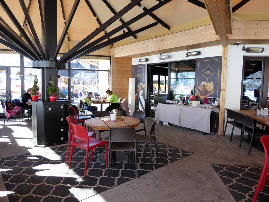 Le Edelweiss Hütte est un restaurant self-service avec une grande terrasse ensoleillée.