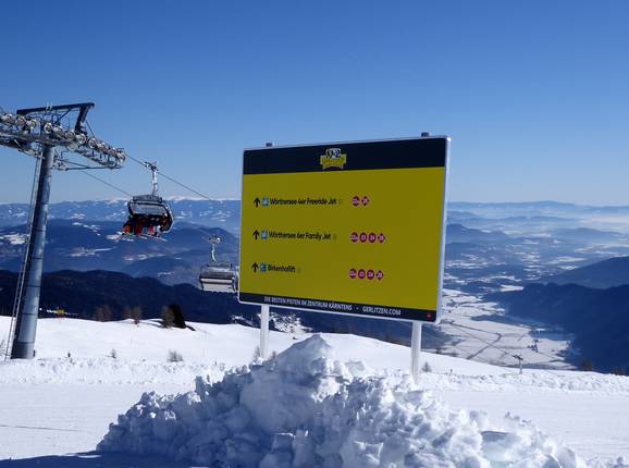 Indications de directions (plans, panneaux informatifs, signalisation) et sécurité sur le domaine skiable Gerlitzen