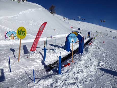 Le grand espace enfants Gimmy Land se trouve légèrement au-dessus de la station inférieure du Schillingbahn à Vals. Les enfants y apprennent de manière ludique grâce à plusieurs tapis roulants. Ainsi, le cours de ski devient un plaisir amusant.