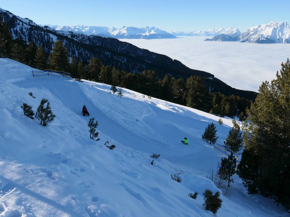 La piste de luge panoramique de 3,7 km offre une vue magnifique sur la vallée de l’Inn. Elle longe la remontée combinée (télésiège et télécabine), permettant ainsi aux lugeurs de prendre facilement la télécabine. Location de luges possible.