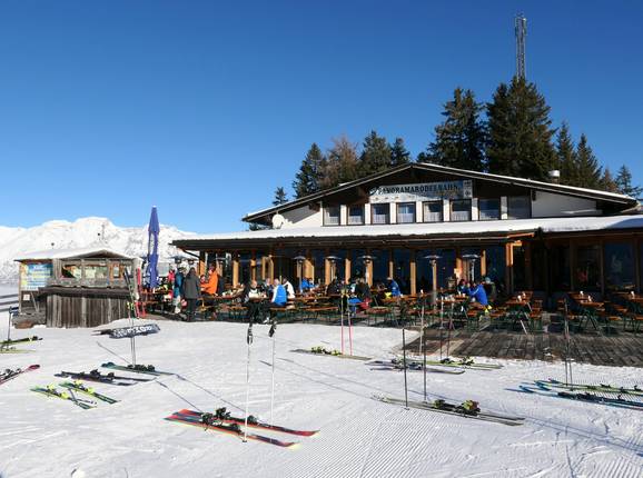 Avec une vue magnifique sur les pistes, vous pouvez vous faire servir amicalement sur la grande terrasse ensoleillée ou dans l’auberge. Des plats traditionnels, des spécialités tyroliennes et des pizzas sont proposés.