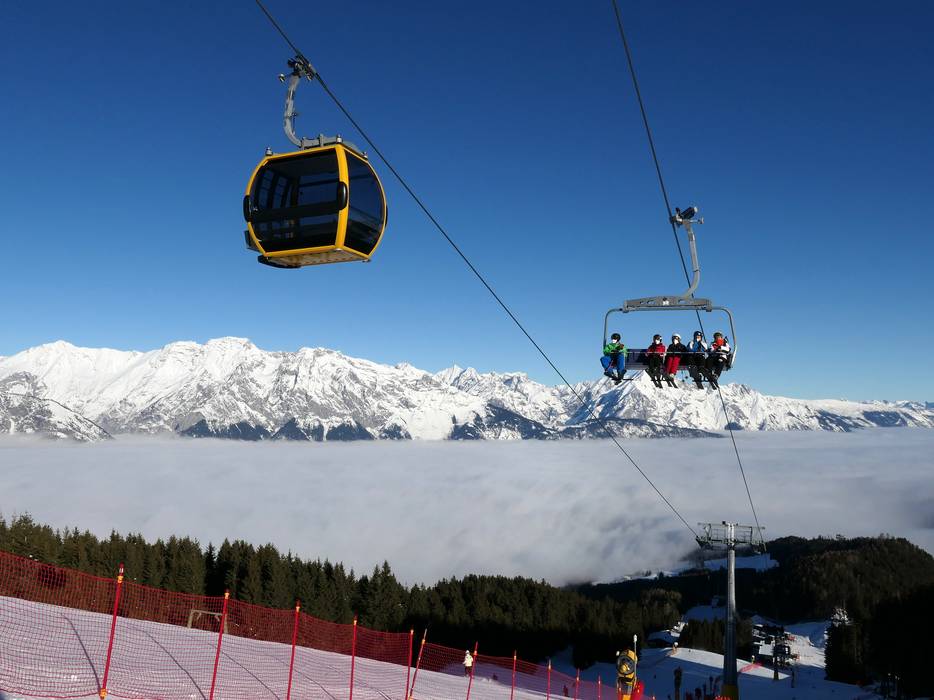 Téléphérique monocâble composé de sièges à 6 places et de cabines à 10 places