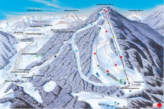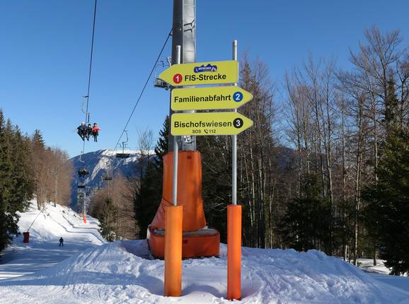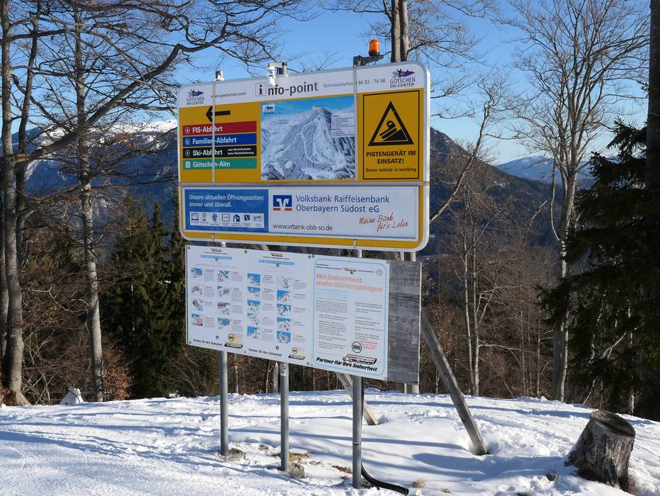 Indications de directions (plans, panneaux informatifs, signalisation) et sécurité sur le domaine skiable Götschen – Bischofswiesen