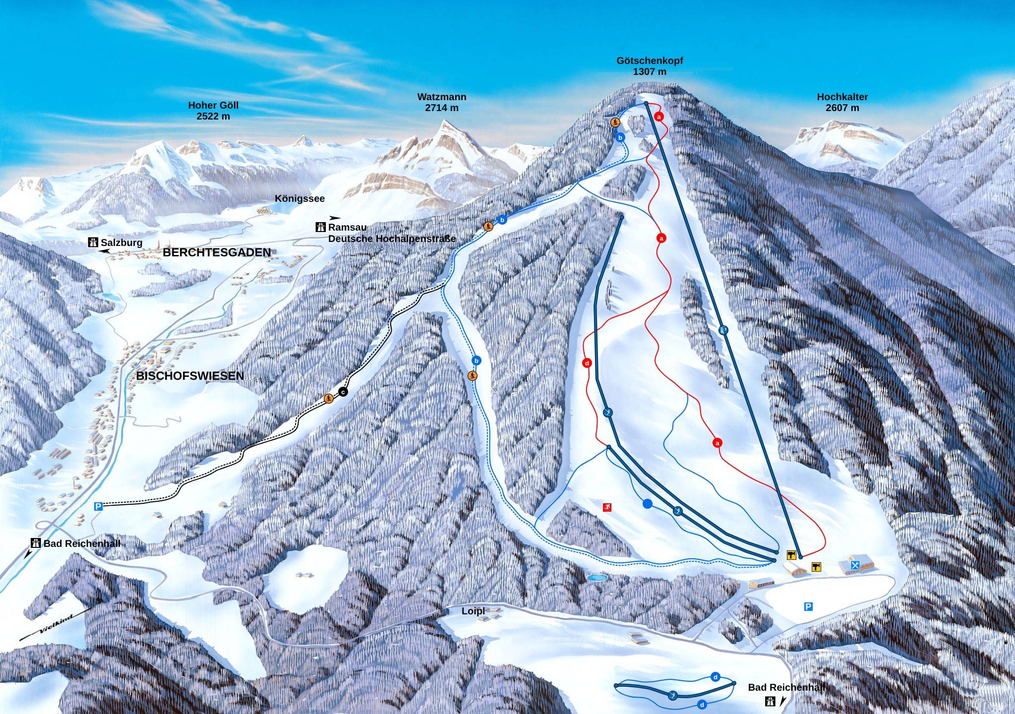 Bischofswiesen (3,3 km), Loipl (0,8 km), Berchtesgaden (9 km) Communes près du domaine skiable