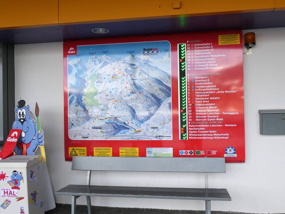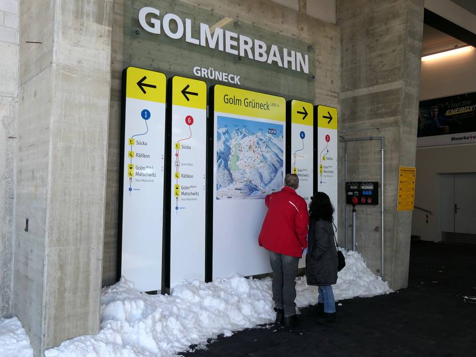 Indications de directions (plans, panneaux informatifs, signalisation) et sécurité sur le domaine skiable Golm