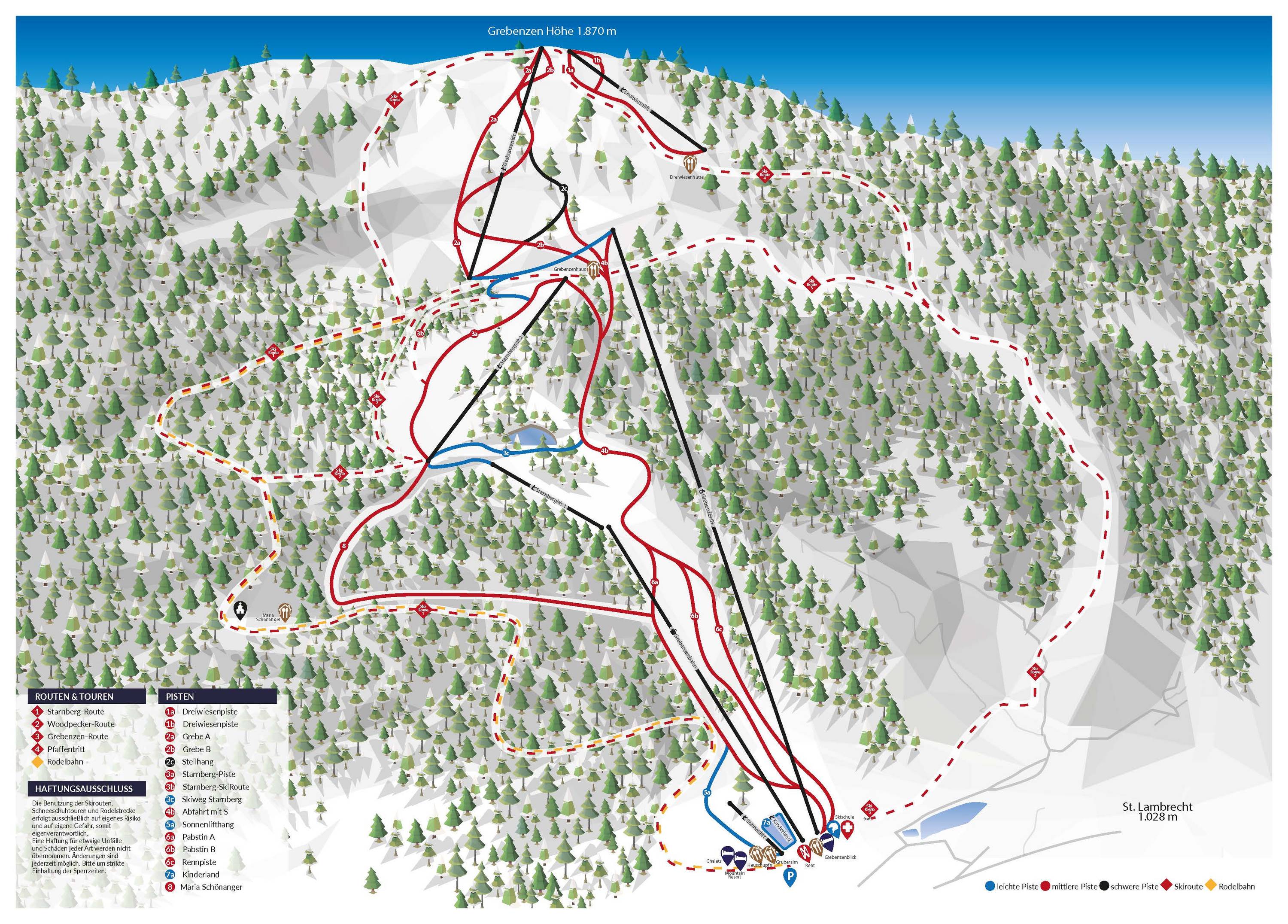 Des panneaux d'information sur les pistes sont disponibles à la station de vallée ainsi qu'à certains points du domaine skiable. Il n'y a pas d'informations actualisées sur l'état des pistes et des remontées mécaniques. Toutes les pistes sont signalées, parfois avec quelques différences par rapport au plan des pistes. Grebenzen est distingué par le label de qualité des pistes de Styrie.
