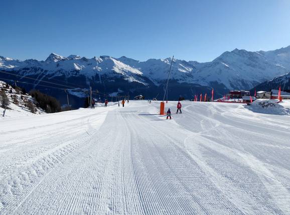 Les débutants sont très bien accueillis à Grimentz et à Zinal sur les pistes pour débutants autour de Bendolla et de Sorebois. On y trouve des tapis roulants et des téléskis pour l’apprentissage. À Zinal, il y a également une pente d’entraînement avec tapis roulant dans la vallée. Entre Sorebois et Espace Weisshorn, on trouve des pistes faciles et larges. À Grimentz, des pistes faciles autour de Bendolla invitent à la découverte. Il est même possible de descendre du Roc d'Orzival et le long du télésiège 6 places Tsarva sur des pistes faciles et larges jusqu’à Bendolla. Un chemin de liaison facile mène à la vallée vers Grimentz. Depuis Zinal, les descentes vers la vallée ne conviennent pas aux débutants, qui devraient redescendre en station par les remontées mécaniques.
