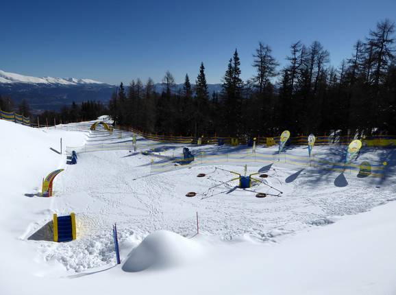 Directement à la station inférieure du Grosseckbahn, au centre de ski de Mauterndorf, l’école de ski Mauterndorf gère le SMARTY-Kinderland. À seulement quelques pas du parking, cet espace réservé propose un tapis magique (tapis roulant), un téléski à corde, un château gonflable, un igloo et une maison de sorcière. Une prise en charge pendant le déjeuner est assurée. Juste à côté se trouve une zone d’entraînement avec des téléskis.