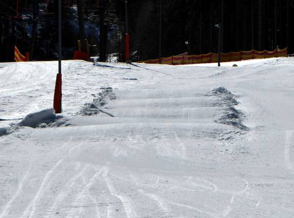 Il n'y a pas de snowpark ni de halfpipe dans le domaine skiable. Il y a quelques petites pistes à vagues.