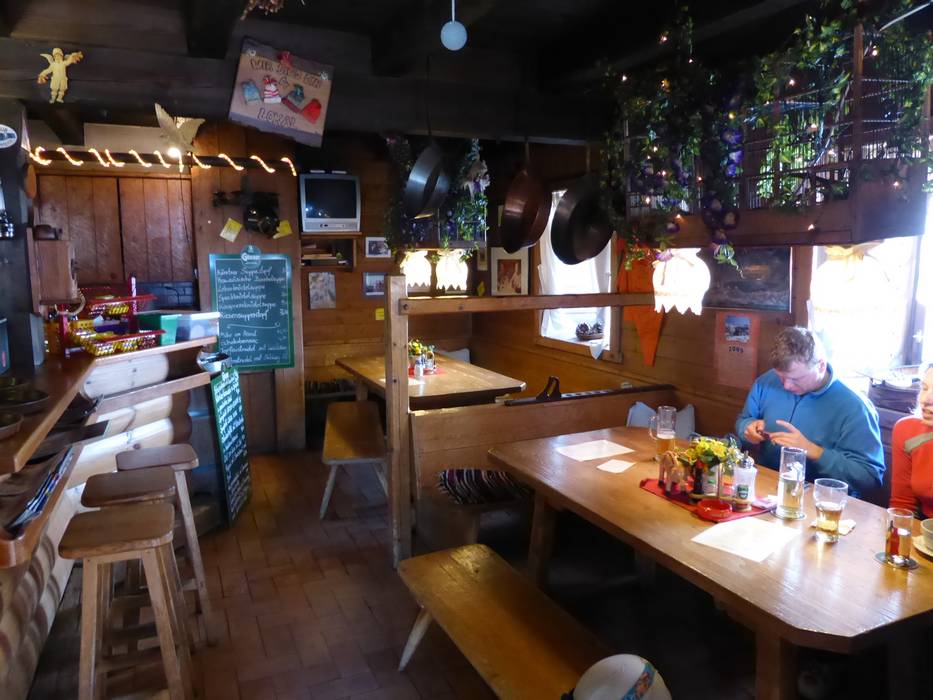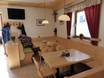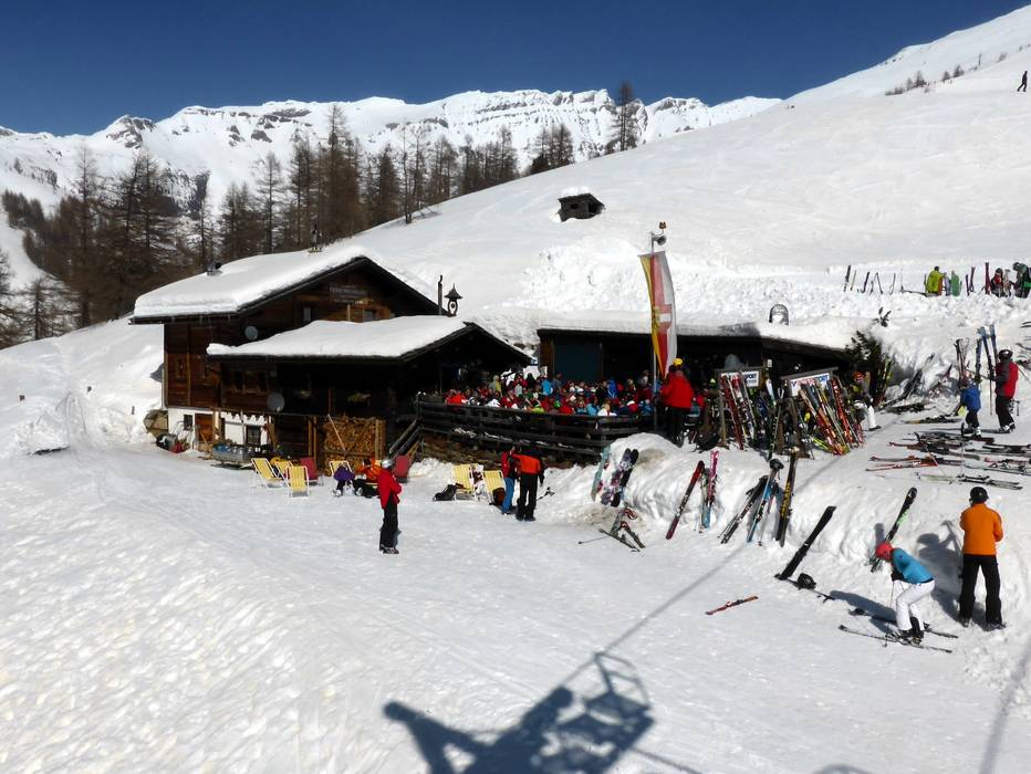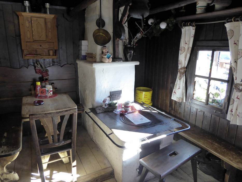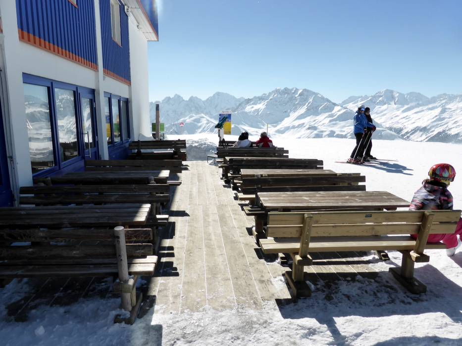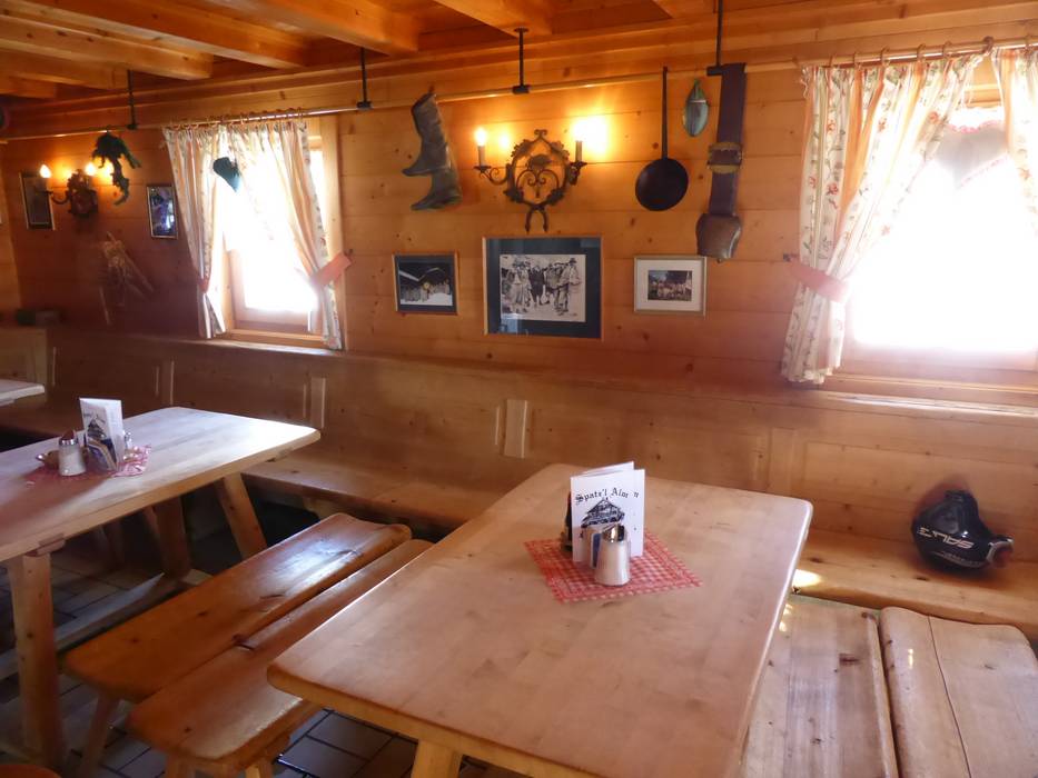 Le refuge de ski dispose d'une très belle terrasse ensoleillée et bénéficie du soleil jusque tard dans l'après-midi. À l'intérieur, le refuge est aménagé avec du vieux bois.