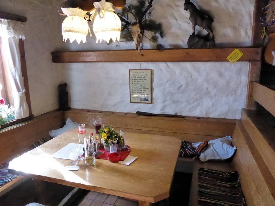 Petit chalet rustique avec grande terrasse ensoleillée et excellente cuisine de refuge.