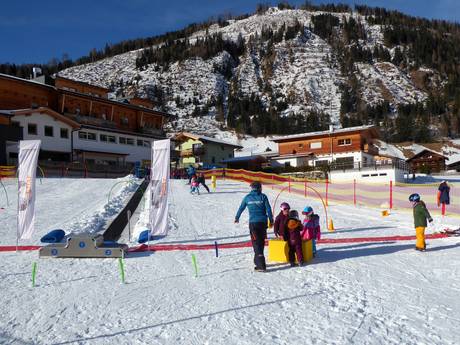 Les enfants de moins de 6 ans skient gratuitement – également sur le domaine débutant et dans les écoles de ski. Le tarif enfant s’applique jusqu’à 18 ans. Il existe des espaces enfants à la station supérieure de Matrei Goldried ainsi qu’au téléski du village à Kals, avec tout ce qu’il faut : Bobo’s Kinderclub, Eddy le bouquetin, tapis roulant pour enfants, aire de jeux chauffée et vaste espace dédié à l’école de ski pour enfants. Un autre espace enfants avec tapis magique se trouve directement au Gradonna Mountain Resort. Ici, il est même possible de s’entraîner gratuitement.