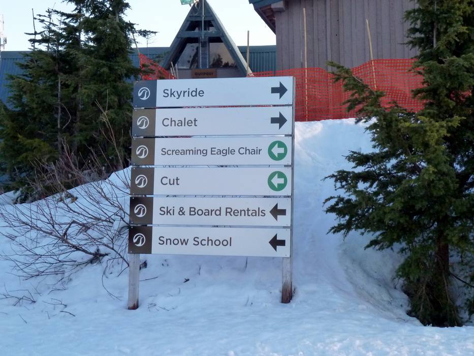 Indications de directions (plans, panneaux informatifs, signalisation) et sécurité sur le domaine skiable Grouse Mountain
