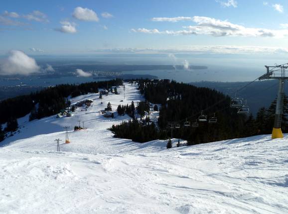 Le domaine skiable Grouse Mountain fait partie des plus petits domaines skiables. Il est situé au-dessus de Vancouver et offre une vue magnifique sur la ville et l'océan Pacifique.