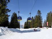 Adapté aux familles, espace enfants à la station supérieure, beau panorama, longues descentes vers la valléePoints faibles: