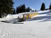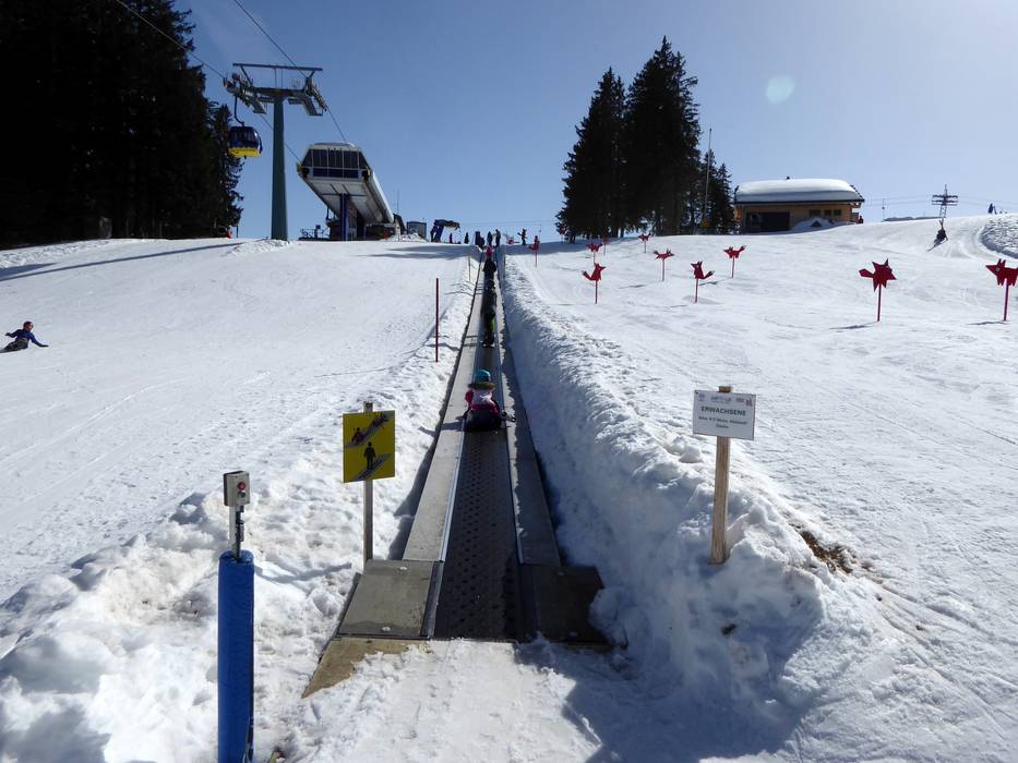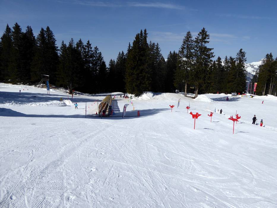 Le Kinderland se trouve directement à la station supérieure de Schwänzelegg, à 1800 m d’altitude. L’accès au Kinderland est gratuit pour tous les enfants et les visiteurs. Il suffit simplement d’acheter un aller-retour en télécabine. Dans le Kinderland, plusieurs tapis roulants desservent une dizaine de petites pistes. Les enfants adorent le tapis roulant avec tunnel musical et les personnages amusants. Les deux trains fantômes (un grand avec arrivée au Schwendilift et un petit dans le Kinderland) font battre le cœur des enfants plus fort. Le manège pour enfants est particulièrement apprécié des tout-petits. Il y a également plusieurs petits obstacles, parfaits pour s’entraîner avant de découvrir le grand snowpark. On ne peut vraiment pas demander plus !