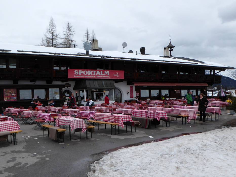 La Sportalm séduit par ses spécialités tyroliennes, servies dans des salles rustiques typiques du Tyrol ou sur la terrasse ensoleillée.