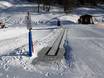 Sur un tapis roulant couvert à Hochgurgl, les enfants peuvent idéalement faire leurs premiers essais à ski.