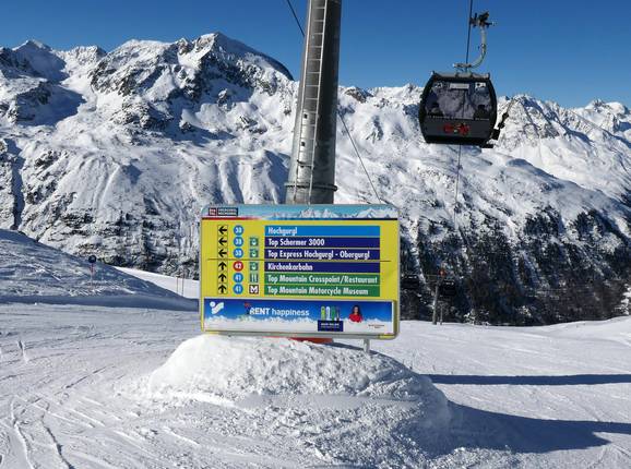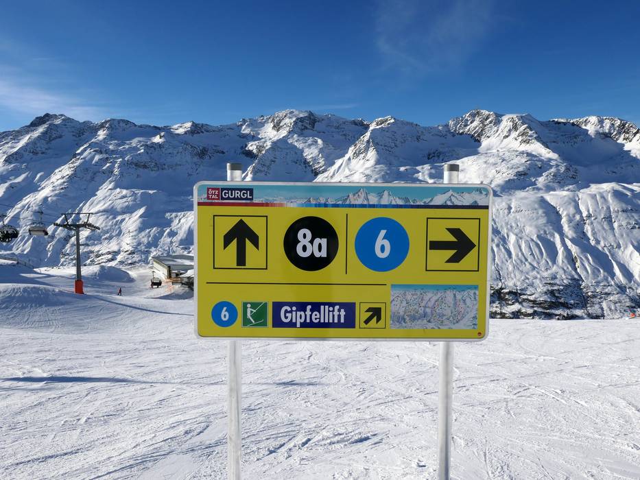Indications de directions (plans, panneaux informatifs, signalisation) et sécurité sur le domaine skiable Gurgl – Obergurgl-Hochgurgl