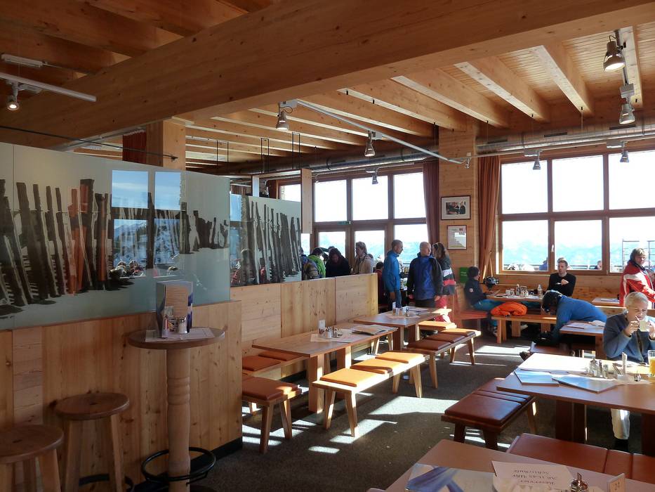 Le restaurant panoramique offre une ambiance moderne avec beaucoup de bois et de grandes baies vitrées. La superbe vue peut également être appréciée sur la vaste terrasse. On y trouve à la fois des plats typiques de refuge et des spécialités régionales. Une partie du restaurant est avec service à table, l'autre en libre-service.