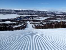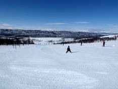 Vue depuis le Storkittelhobben, le point… Des pistes parfaites et une vue magnifique dans… Rennes au bord de la piste dans le domaine… La télécabine Hemavan avec une vue panoramique…
