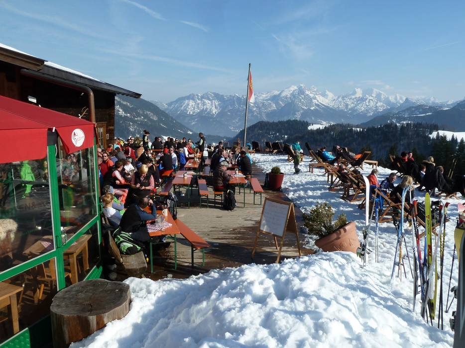 La cabane de ski Wildalm propose un bon choix de plats et de boissons. Par beau temps, vous pouvez vous détendre au soleil sur la terrasse ou dans un transat et profiter du magnifique panorama montagneux. À l'intérieur, vous trouverez du bois rustique et un poêle crépitant.