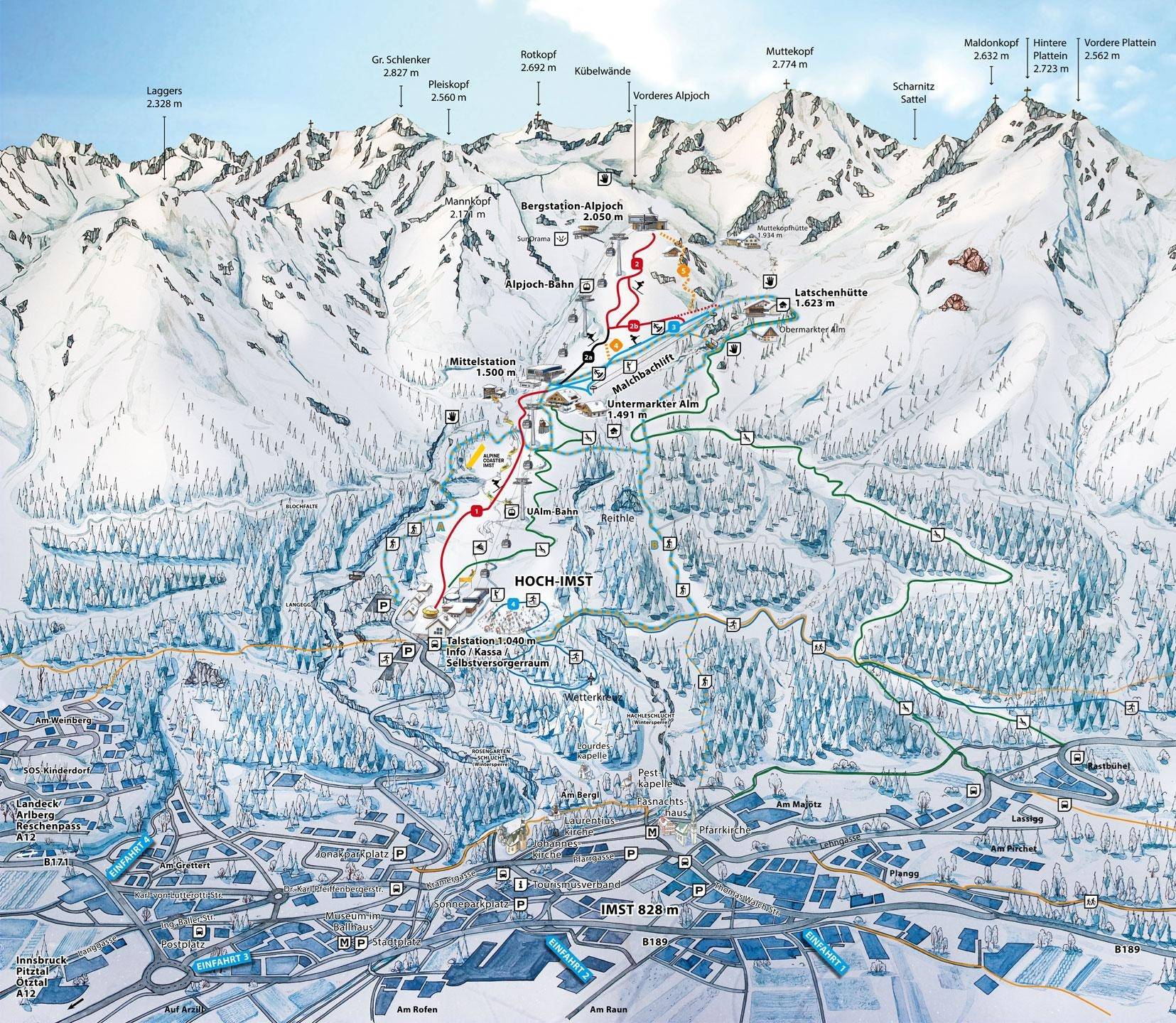 Indications de directions (plans, panneaux informatifs, signalisation) et sécurité sur le domaine skiable Hoch-Imst – Imst