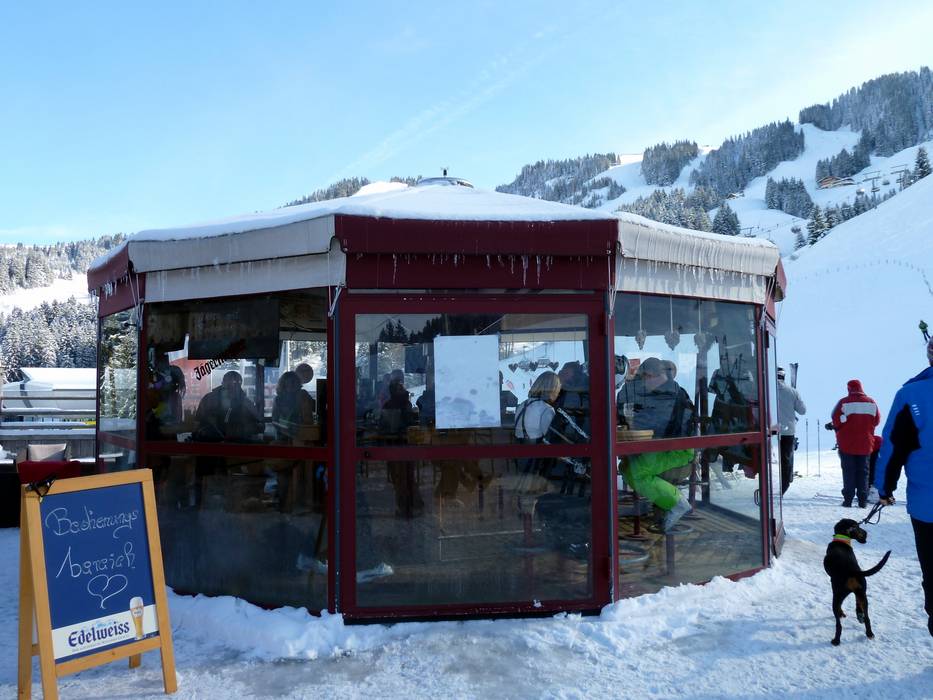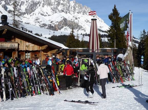 Le bar après-ski sous le parasol à la Zapferlalm est très apprécié. Plus tard, il est possible de descendre directement jusqu'à Mühlbach.