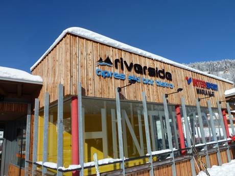 Le Riverside est idéalement situé au centre de ski de Hintermoos. La terrasse ensoleillée invite à la détente et le bar est parfait pour faire la fête.