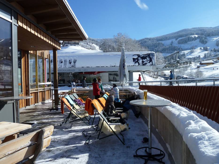 Le Tiergartenscherm vous invite à l'après-ski avec sa grande terrasse et son chaleureux parasol – il est possible de redescendre directement jusqu'à Mühlbach sans prendre un autre télésiège.