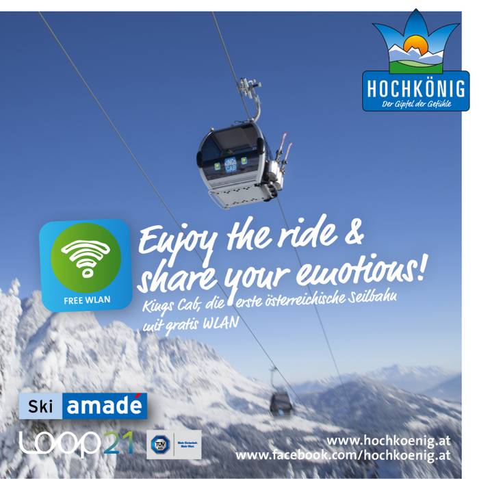 Première remontée mécanique d'Autriche à disposer du réseau local sans fil au HochkönigMühlbach am Hochkönig (17.09.2013) – Le domaine skiable du Hochkönig (Mühlbach – Dienten) fait figure de pionnier en équipant sa télécabine Kings Cab du réseau local sans fil gratuit et du service d'informations « Mountainment® ». La société Loop21, spécialiste du réseau local sans fil, est chargée du projet et de la livraison du matériel et du logiciel. Grâce à elle, le réseau devient une plate-forme d'information moderne pour les visiteurs.