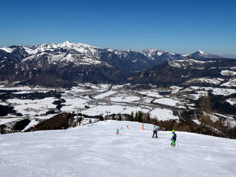 Le domaine skiable Hochkössen (Unterberghorn) – Kössen se situe dans le Kaiserwinkl (Autriche, Tyrol, Tiroler Unterland).