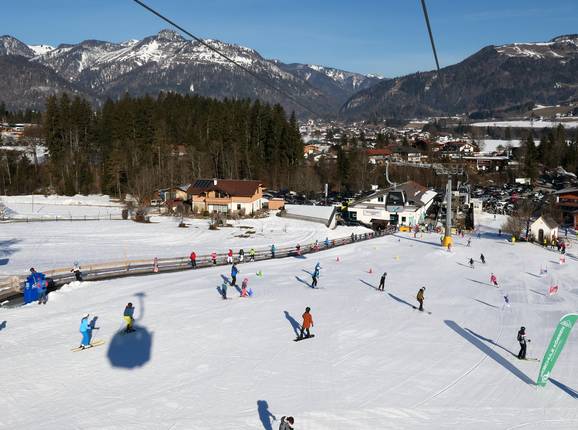Dans le domaine skiable de Hochkössen, un excellent espace d’apprentissage se trouve autour de la station de la vallée. Les pistes faciles près des tapis roulants, du téléski à corde et du téléski à assiette sont idéales pour apprendre. Il existe même un forfait de ski spécial à tarif réduit pour les remontées d’entraînement dans la vallée. Le jardin des enfants de l’école de ski se trouve également à la station de la vallée. Toutes les remontées mécaniques du domaine skiable sont accessibles par des pistes faciles. La descente facile Hornabfahrt au télésiège du sommet est particulièrement agréable. La descente familiale facile vers la vallée convient très bien aux enfants et aux débutants, même si elle est parfois aussi étroite qu’un chemin de liaison.