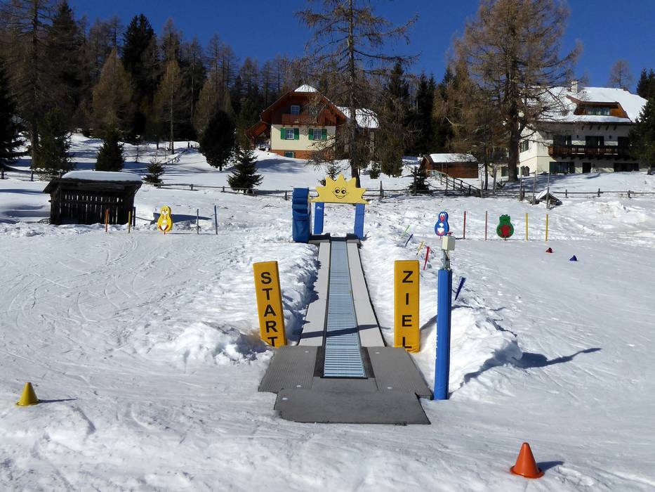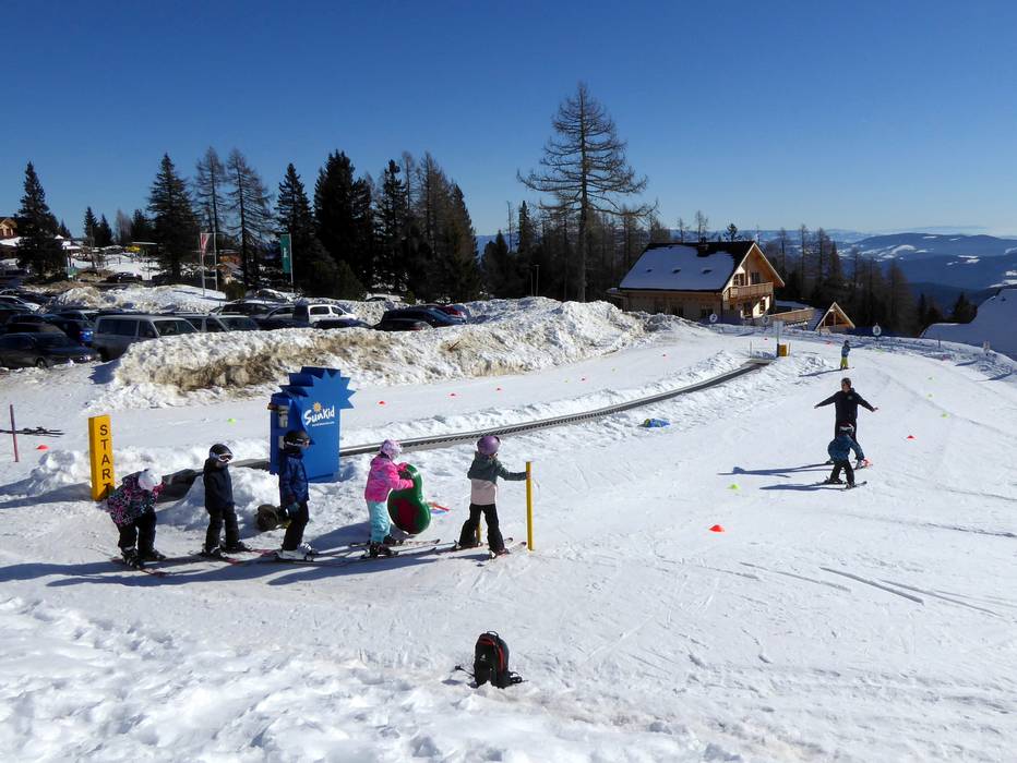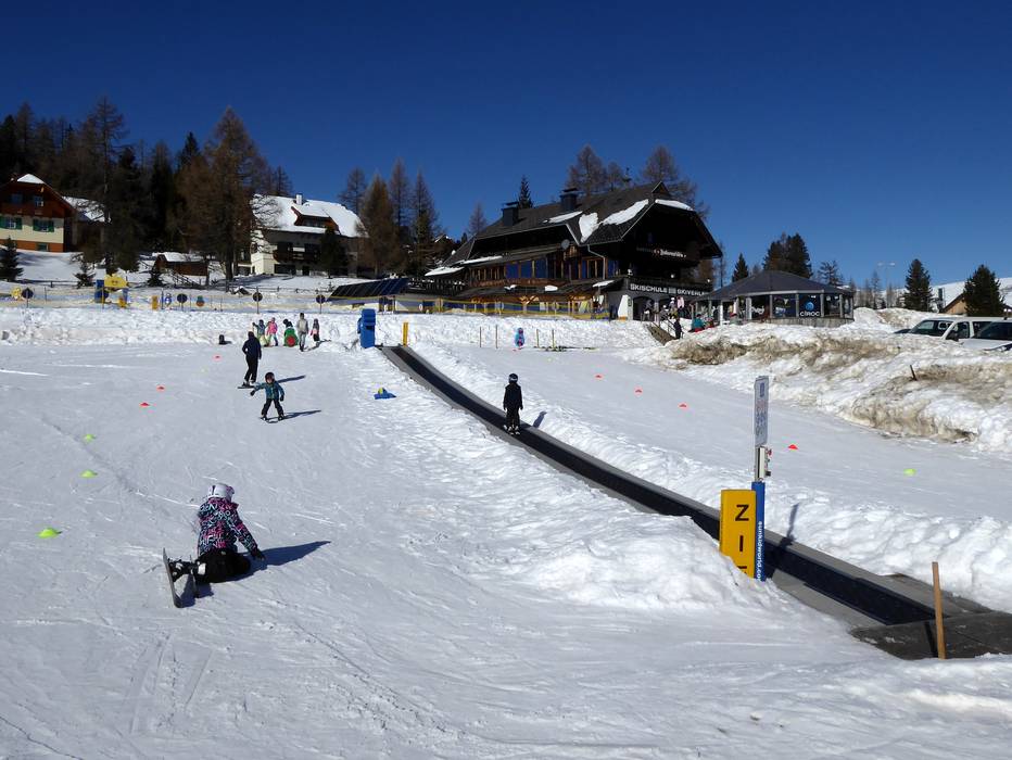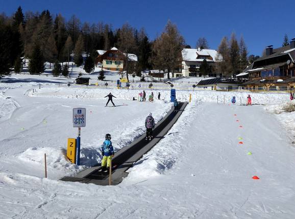 Le pays des kangourous de l'école de ski Hochrindl est très bien équipé avec deux tapis magiques. Ici, les enfants peuvent apprendre à skier en toute tranquillité.