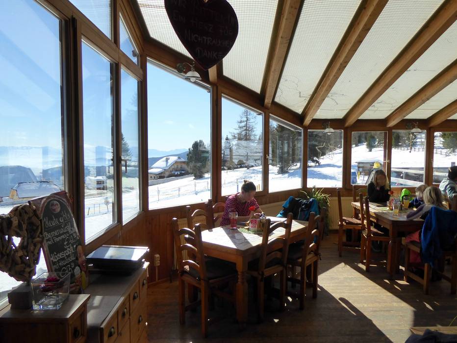 Le chalet de ski très apprécié dispose d'une salle à manger chaleureuse et rustique ainsi que d'une grande terrasse couverte. Les plats sont faits maison, de saison et régionaux. La cuisine traditionnelle carinthienne est mise à l'honneur.