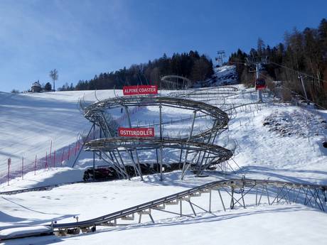 La seule piste de luge ouverte toute l'année du Tyrol oriental (Alpine Coaster) serpente sur 2,8 km à travers la forêt jusqu'à la station de la vallée. On traverse des virages en spirale et des vagues à une vitesse pouvant atteindre 40 km/h. C'est un immense plaisir.