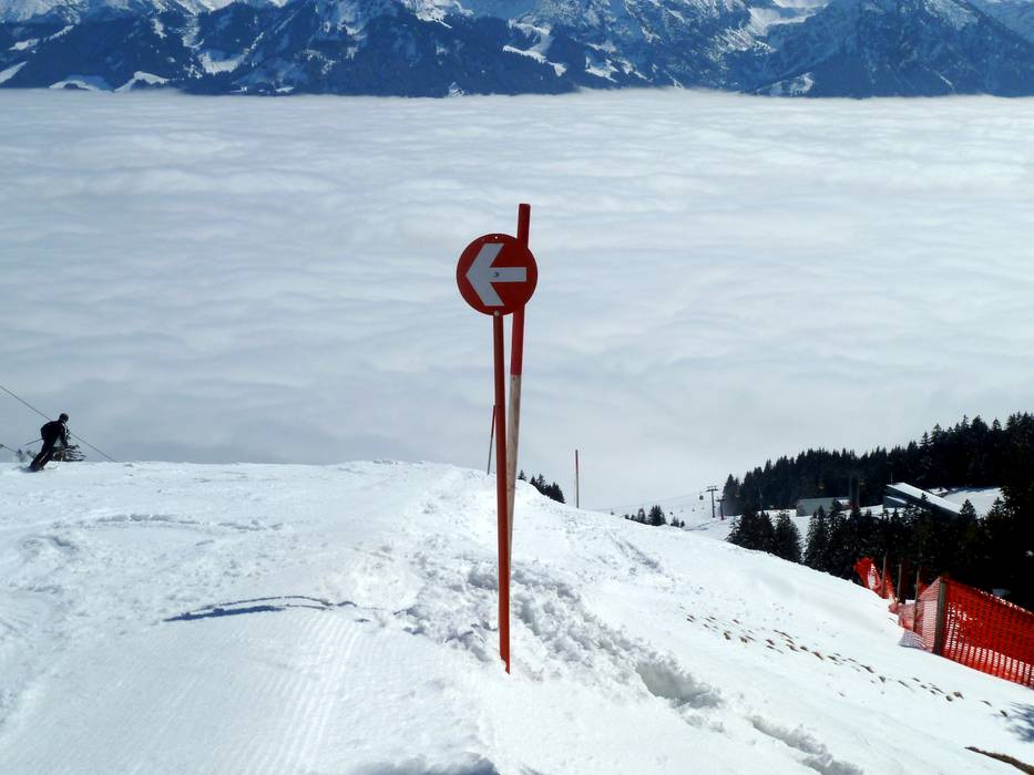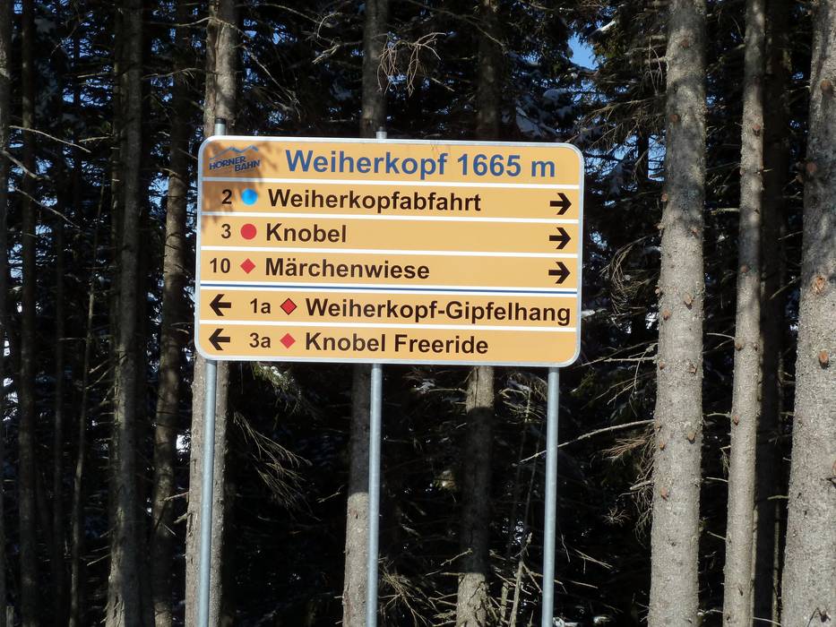 Indications de directions (plans, panneaux informatifs, signalisation) et sécurité sur le domaine skiable Hörnerbahn – Bolsterlang