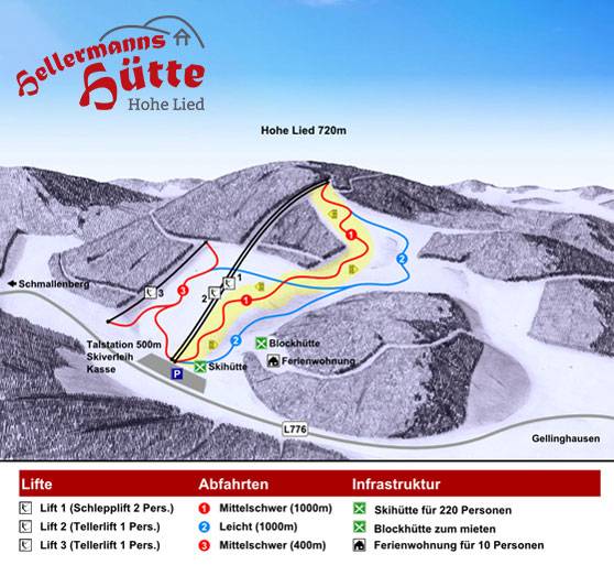 Plan des pistes Hohe Lied – Gellinghausen (Schmallenberg) Saison ---- !!! closed/stillgelegt